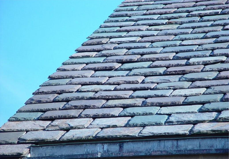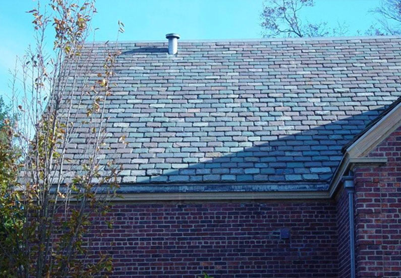 Non-weathering Gray / Green and Non-weathering Mottled Green / Purple slates were used in the slate roof replacement of an old Concord, Massachusetts museum.